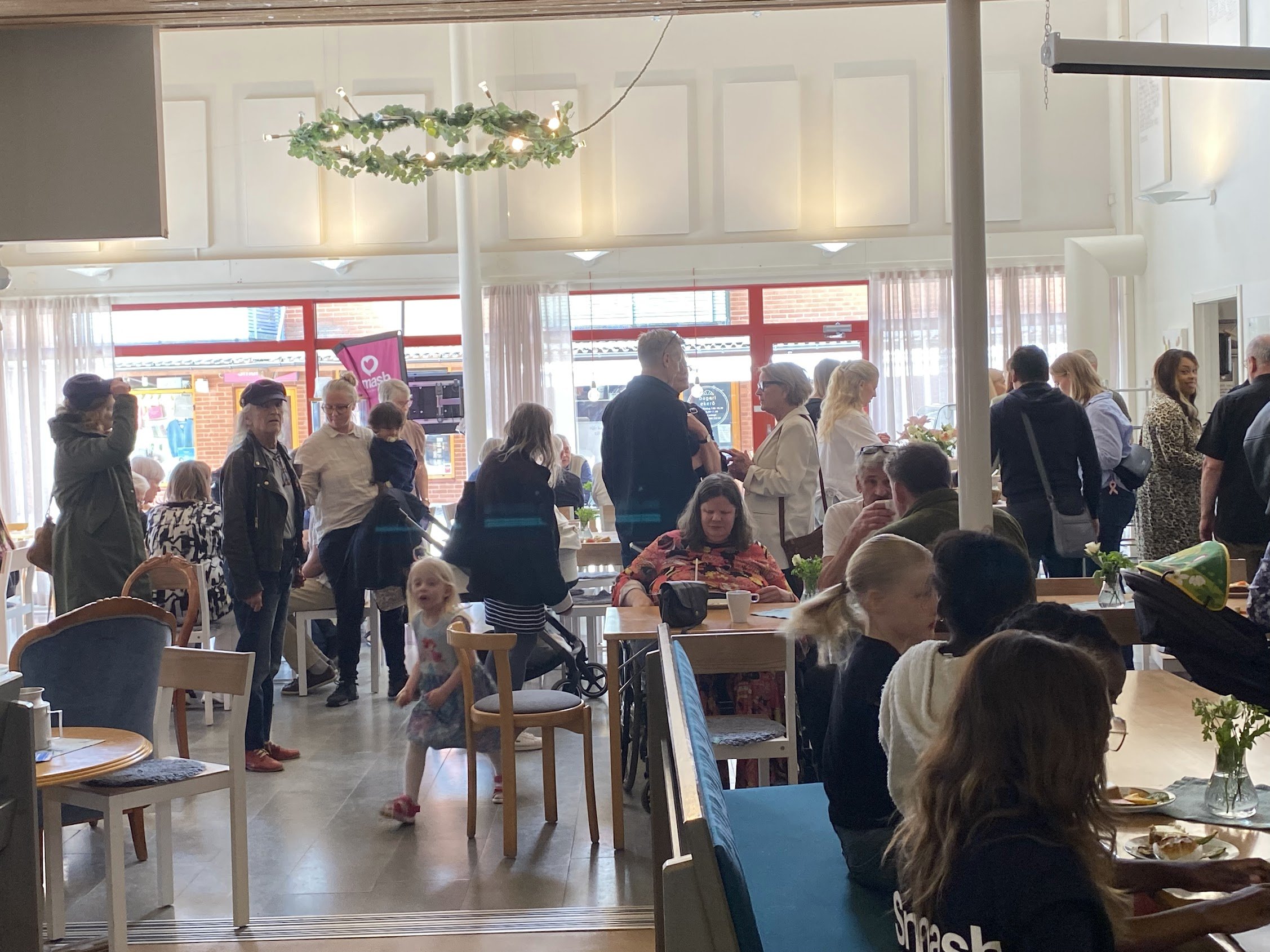 Från kl. 10.45 kan de checka in för att vara med på Smash, barnens egen gudstjänst. Deras möte börjar alltid efter att Smash-lådan har presenterats uppe på estraden, oftast runt kl. 11.15.